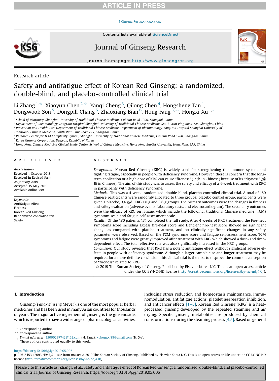 (徐宏喜-Safety and antifatigue effect of Korean Red Ginseng a randomized(高丽红参不上火_改善疲劳功效_人体临床试验 2019.5.21)