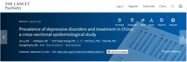 ①Lu J, Xu X, Huang Y, et al. Prevalence of depressive disorders and treatment in China: a cross-sectional epidemiological study. Lancet Psychiatry. Published Online September 21, 2021 https://doi.org/10.1016/S2215-0366(21)00251-0 ;