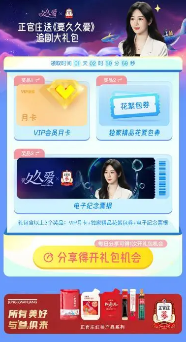 正官庄实力宠粉,联合代言人热剧《要久久爱》陪粉丝追剧谋福利