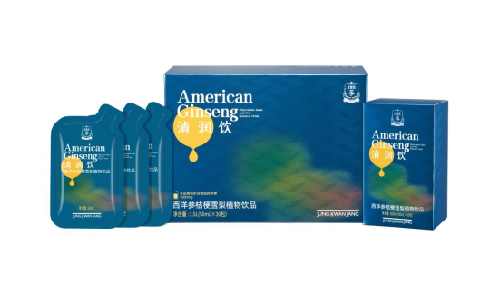 西洋参清润饮,选取优质西洋参、梨、桔梗等原材料,清润甘甜,便携式包装设计,能匹配丰富的饮用场景。