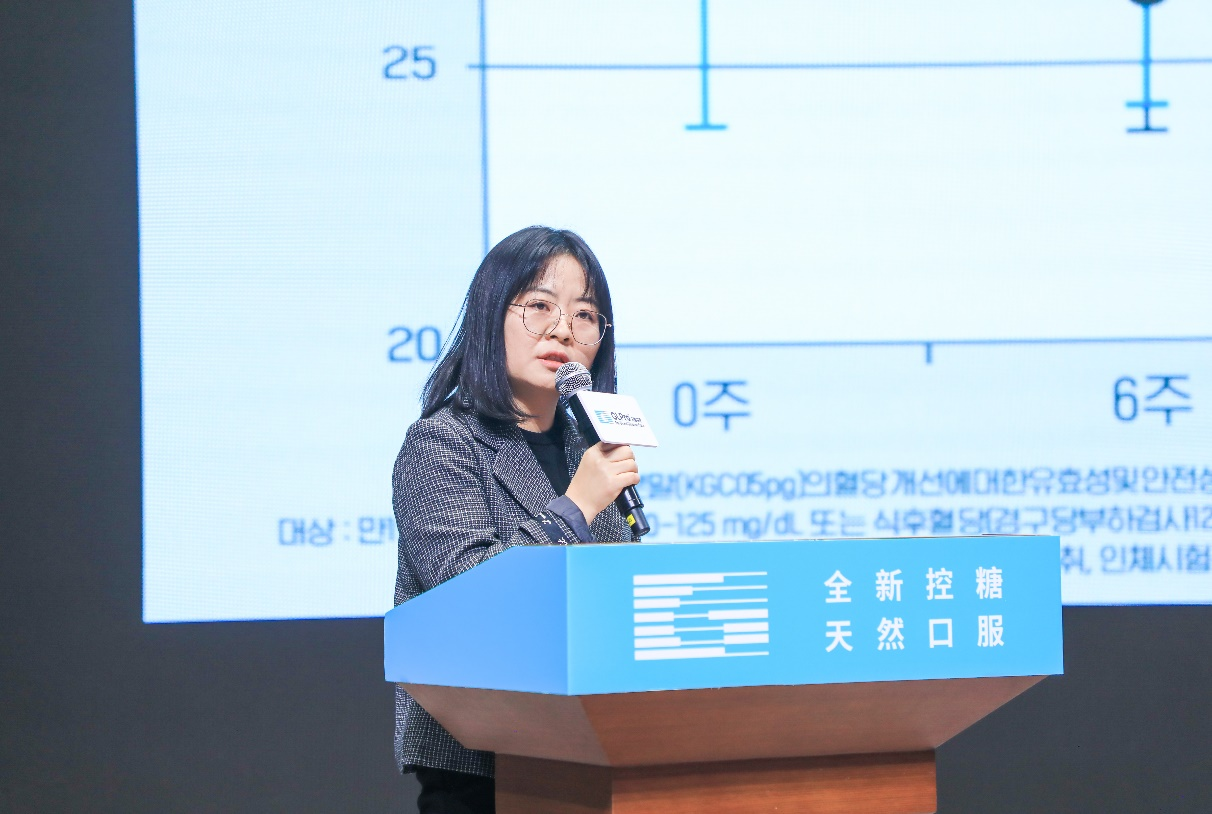 图5:正官庄中国营销部商品总监林慧星女士介绍GLPro品牌系列新品